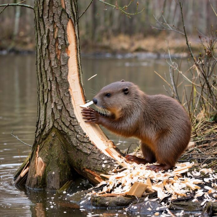 Грызун основательно обживается: он уже серьезно повредил несколько прибрежных деревьев, явно сооружая себе хатку.