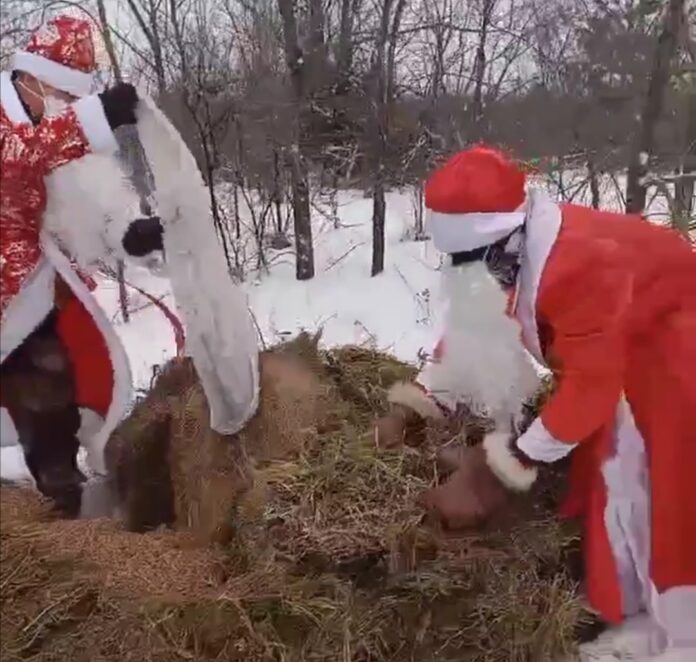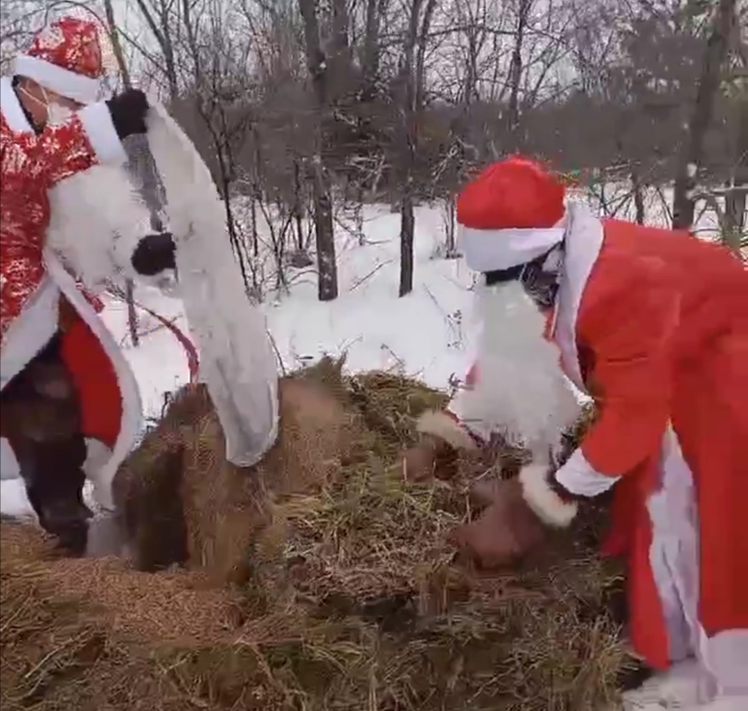 Вместе они разложили в лесу сено, зерно и соль, чтобы животные легче перенесли зиму.