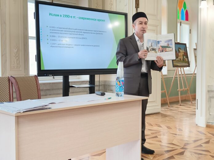 Али-хазрат Хабибуллин выступил на одной из секций слета с публичной лекцией на тему «Изучение истории традиционных религий в рамках истории нашего края». Директор медресе рассказал коллегам об становлении Ислама в Саратовской губернии с момента его принятия народами Волжской Булгарией в 922 году и Золотой Ордой — в 1313-м, о заселении края мусульманами, татарами башкирами и казахами, об истории мечетей и многом другом.