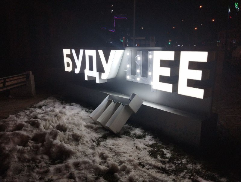 В Энгельсе Саратовской области вандалы повредили светящуюся фотозону «Будущее» у кинотеатра «Родина», оторвав с неё буквы.