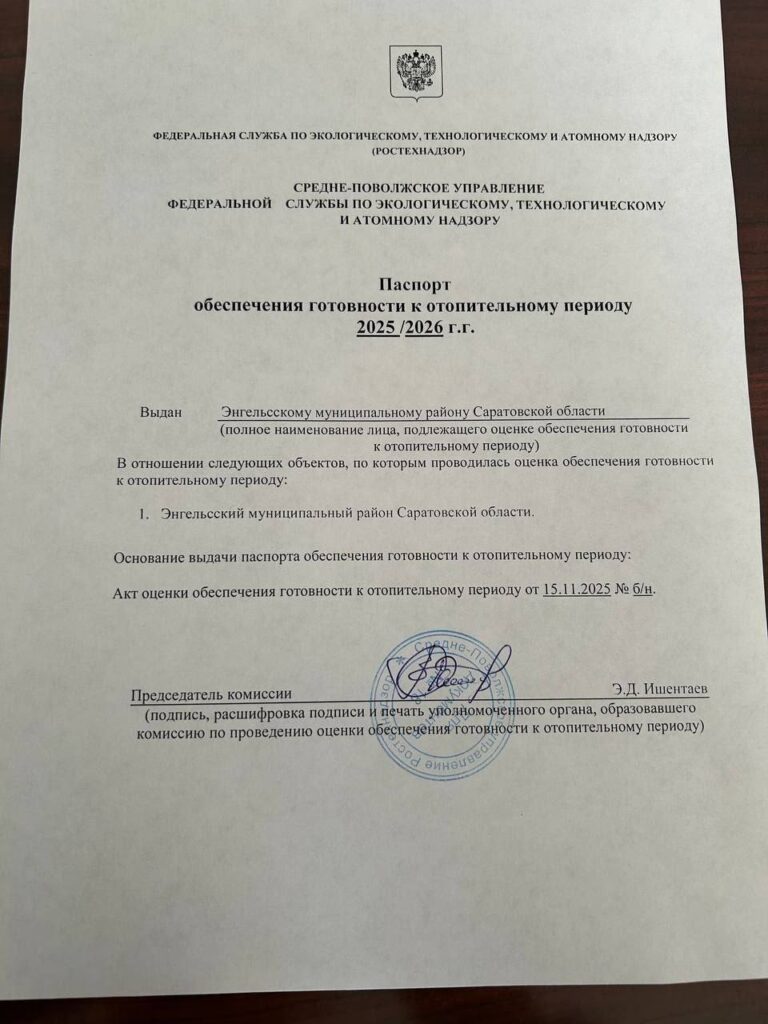 Энгельсский район впервые за 7 лет получил паспорт готовности к отопительному сезону.