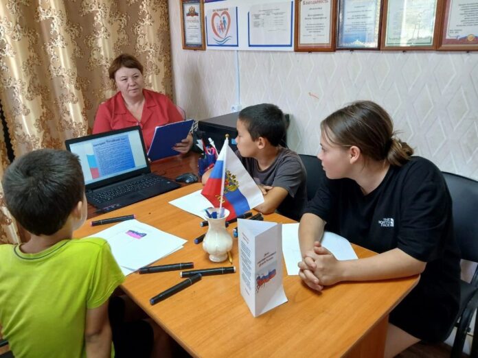 Активистка проекта «Женское движение Единой России», участница местного отделения «Союз женщин России» Краснопартизанского района Оксана Кульмуратова провела познавательную викторину «Флаг России — гордость наша!».