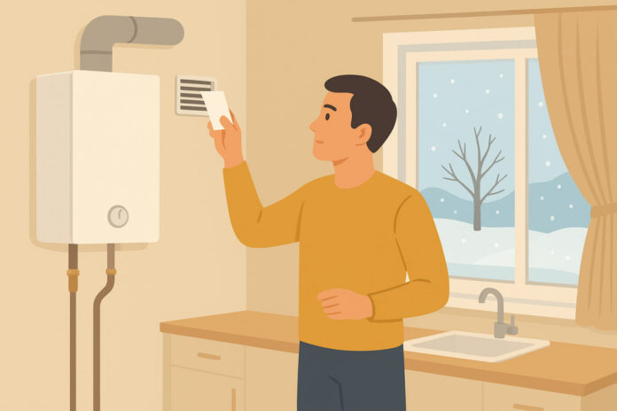 Проверить тягу в вентиляционном и дымовом каналах можно с помощью тонкого листа бумаги, приложив его к вентиляционной решетке или смотровому окну выключенного газового прибора. Если лист притягивается – тяга есть, если не притягивается или отталкивается – тяги нет.