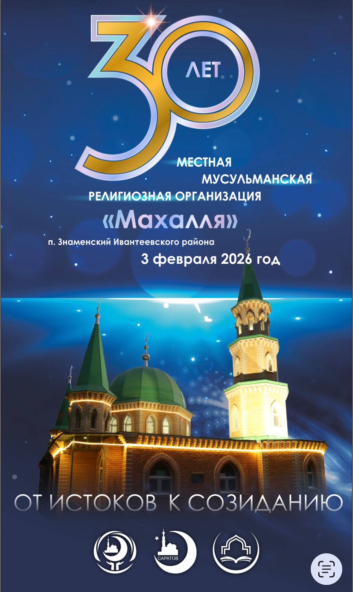 Участники мероприятия смогут не только пообщаться и вспомнить об истории создания мусульманского храма, в программе вечера также — выступления известных в Саратовской области религиозных деятелей, исполнение нашидов и стихов, просмотр специального подготовленного к 30-летию фильма, а также благотворительный аукцион.