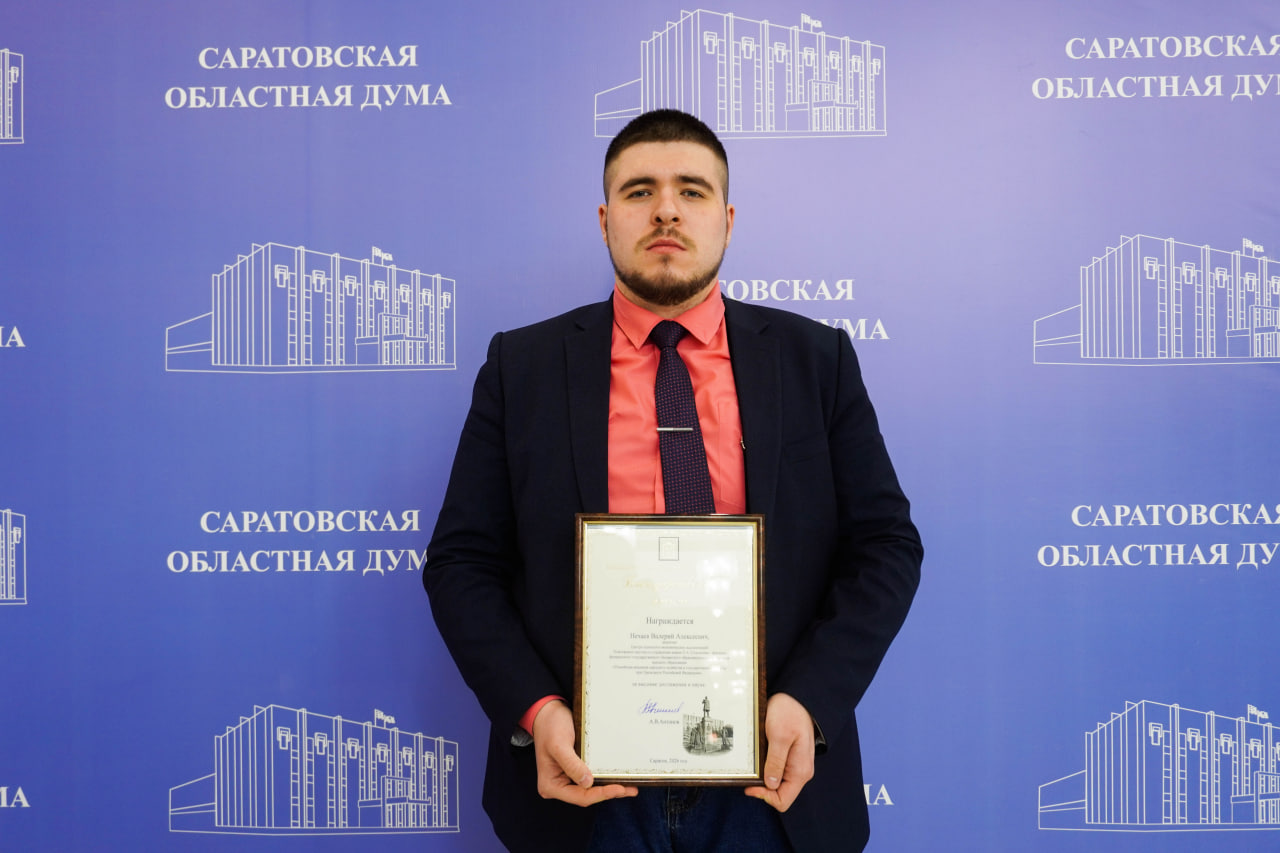 Поволжский институт управления имени П.А. Столыпина РАНХиГС представил магистрант Валерий Нечаев, который был награждён Благодарственным письмом gредседателя Саратовской областной Думы за высокие достижения в науке Саратовской области.