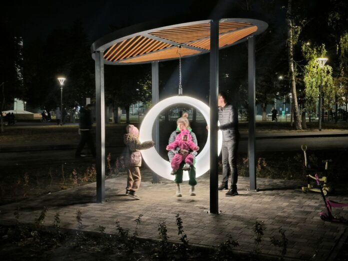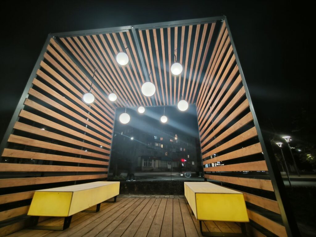 Светящиеся качели, лимонного цвета лавочки, россыпь фонариков – настоящее украшение центра Петровска.