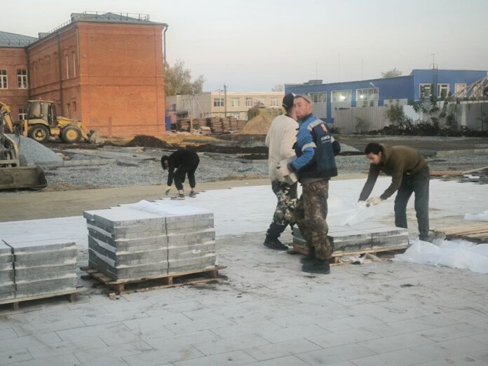 Как сообщил глава района Максим Калядин, рабочие перешли на один из последних участков – будущий детский игровой городок у Духовного училища.