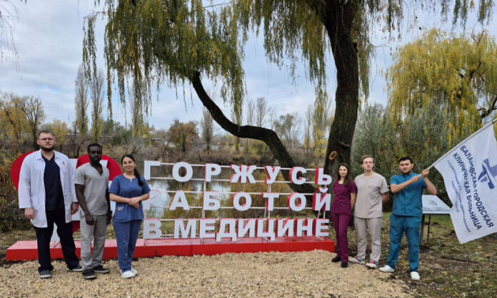 На территории Балаковской горбольницы установлен арт-объект, посвященный работникам здравоохранения.