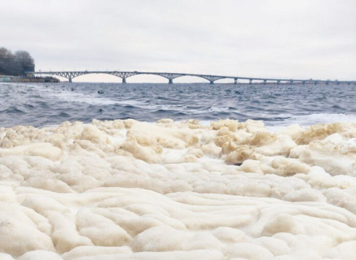 На Волге в районе Саратова берега покрылись обильной пеной, чьи складки напомнили подписчикам шерсть шарпея.