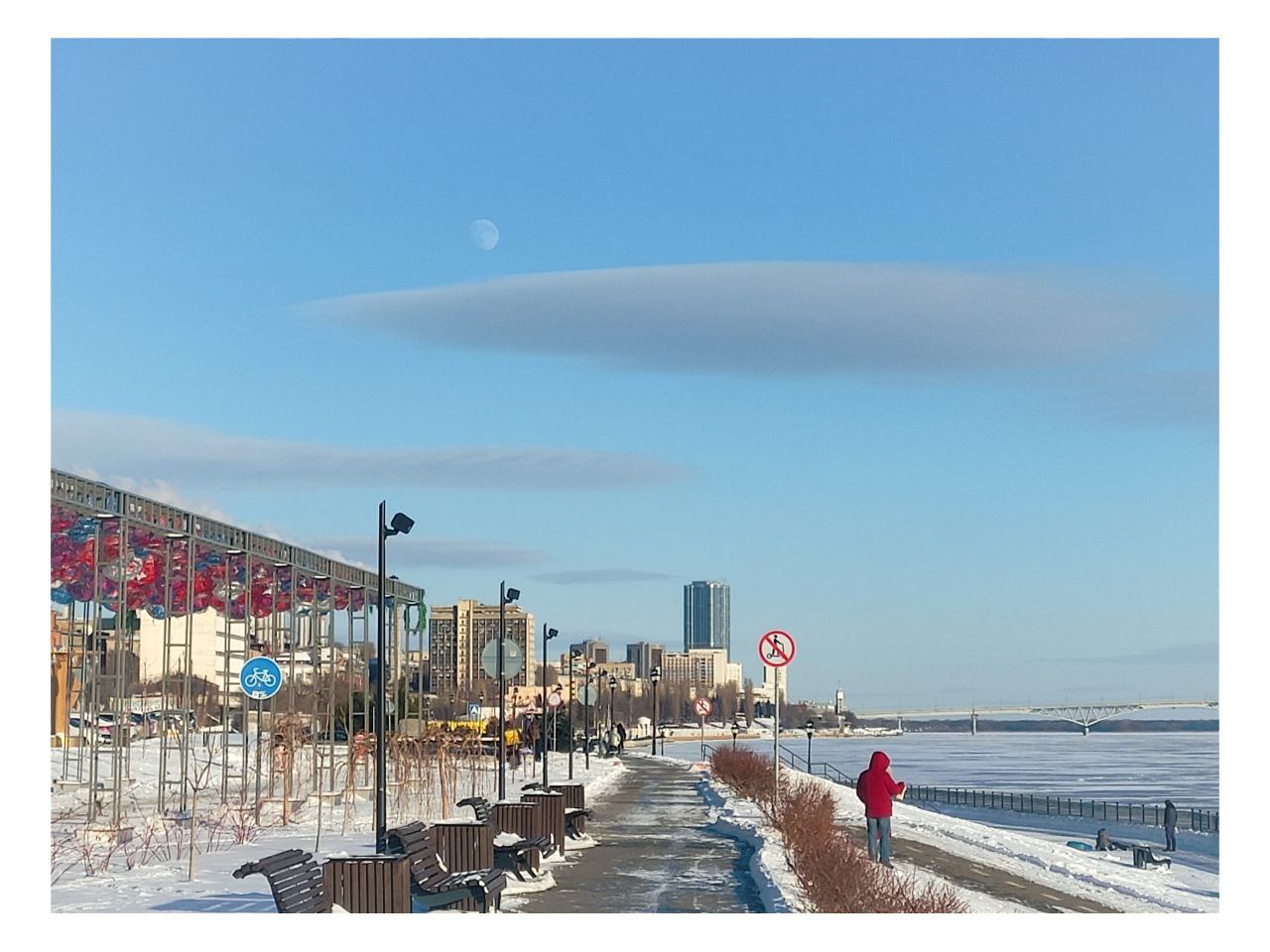 Над застывшей Волгой саратовцы заметили необычное природное явление — чечевицеобразные облака.