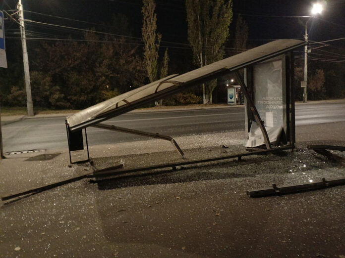 Поздно вечером 3 октября в саратовском поселке Елшанка автомобиль врезался в остановочный павильон на Московском шоссе.
