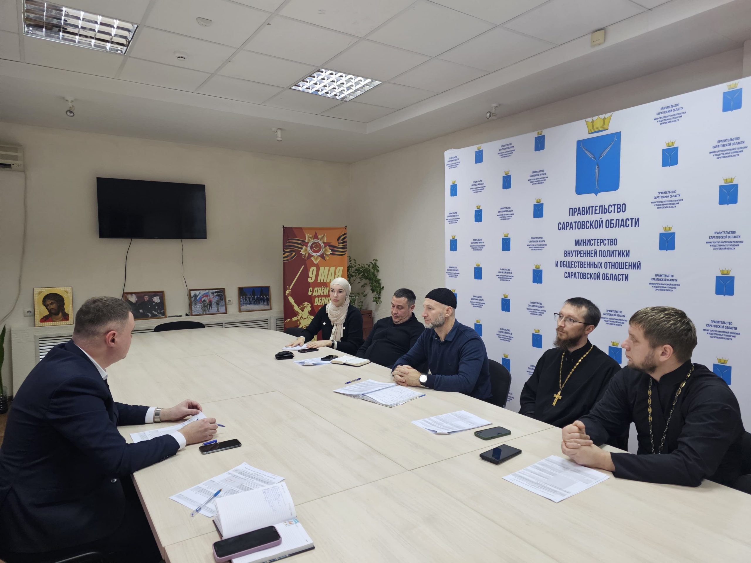 В беседе приняли участие заместитель министра Тимофей Лещенко, представитель Саратовской митрополии, иерей Дионисий Уразаев, от ДУМ Саратовской области — заместитель муфтия Ильяс-хаджи Богатырёв, руководитель Фонда «Юмарт» Рашид Муляев и общественный деятель Люзия Акчурина.