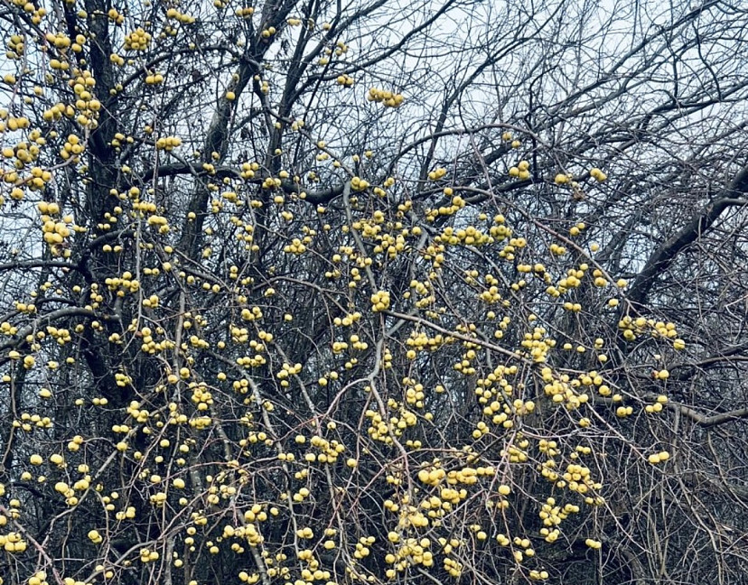 Сотрудники национального парка «Хвалынский» поделились фотографиями уникального явления — яблони, сохранившей свои плоды после полного опадания листвы.