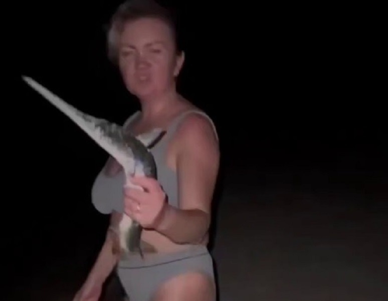 Как сообщает телеграм-канал «112», туристка решила сфотографироваться, судя по видео, с рыбой-иглой, которую она держала в руках на суше.