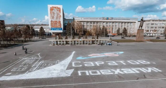 На Театральной площади областного центра прошло праздничное мероприятие, приуроченное к 65-й годовщине первого полета человека в космос. Дети нарисовали масштабную композицию под названием «Саратов, Поехали!», тем самым отдав дань уважения истории освоения космоса: именно на саратовской земле приземлился Юрий Гагарин.