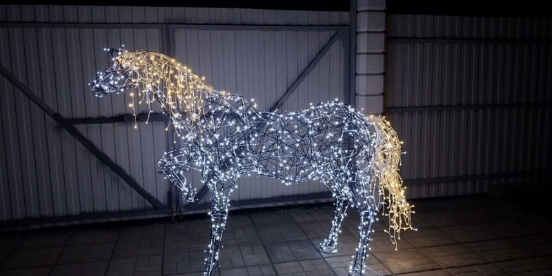 Житель посёлка Дубки в Саратовской области выставил на продажу на интернет-площадке необычную новогоднюю инсталляцию — светящуюся фигуру лошади собственного изготовления.
