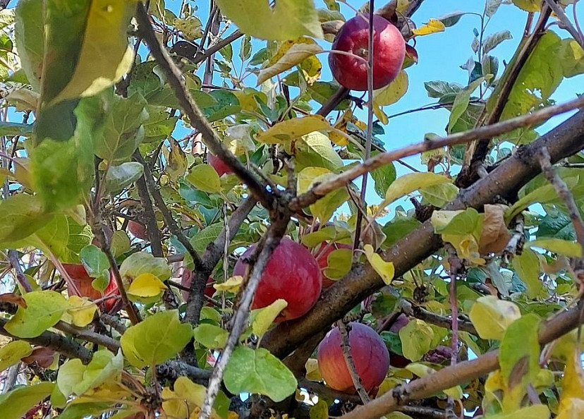 На фотографиях запечатлены яркие рябиновые гроздья, последние садовые цветы и неубранные яблоки на ветвях.
