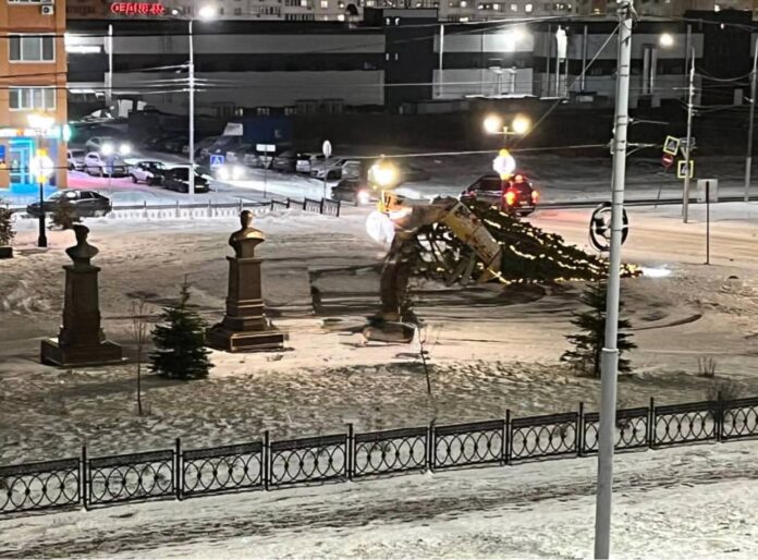 Украшенные деревья не смогли устоять перед напором непогоды, которая бушевала в регионе накануне: метель, сильный снегопад и ураганный ветер создали экстремальные условия.