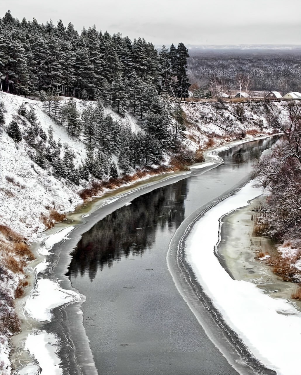 Фотографии замерзающей реки Хопёр, сделанные Ларисой Рыбак, вызвали бурную реакцию в социальных сетях. Кадры, запечатлевшие начало ледостава, заснеженный лес и сосны на знаменитой Никольевской круче в Балашовском районе, напомнили жителям региона о суровой красоте родной природы.