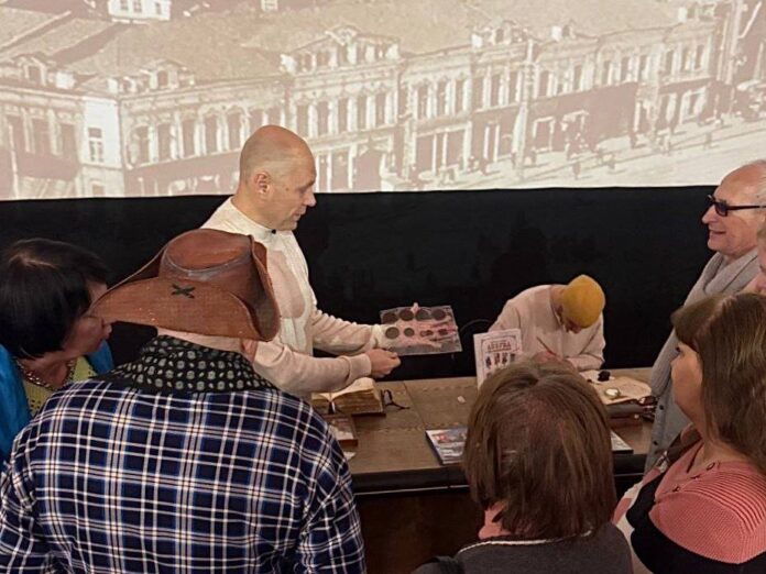Ещё до начала сеанса гостей ждало погружение в атмосферу прошлого. В главном зале Дома кино развернулась выставка исторического реквизита. Гости могли вблизи рассмотреть уникальные сабли и шпаги, старинные иконы и редкие книги — те самые артефакты, что использовались в съёмках фильма. Особый интерес вызвал мастер-класс по каллиграфии. Каждый желающий получил возможность попрактиковаться в старорусском письме.