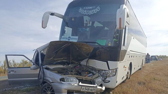 Как рассказали в облспасе, в 10:21 в службу «112» поступило сообщение о том, что районе вблизи села Песчаный Умет столкнулись ВАЗ-2115 и пассажирский автобус «Саратов-Белгород».