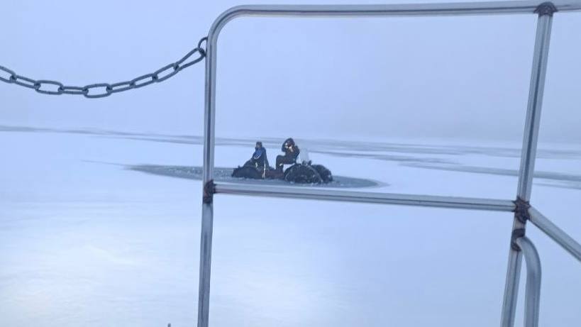 Двое мужчин, находившиеся на снегоходе («каракате»), провалились под лед.