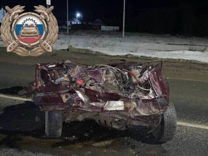 В Ершовском районе ВАЗ врезался в столб и разорвался пополам.