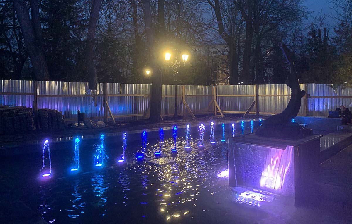 В «Липках» протестировали реконструированный фонтан «Рыбка»