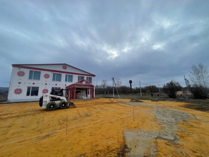 Подрядчик уже выровнял территорию в селе Оркино и приступил к разметке участка, который предстоит замостить.