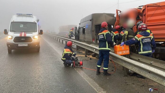 Массовая авария случилась в условиях сильного тумана. Об этом сообщает начальник управления региональной безопасности правительства Саратовской области Юрий Юрин.