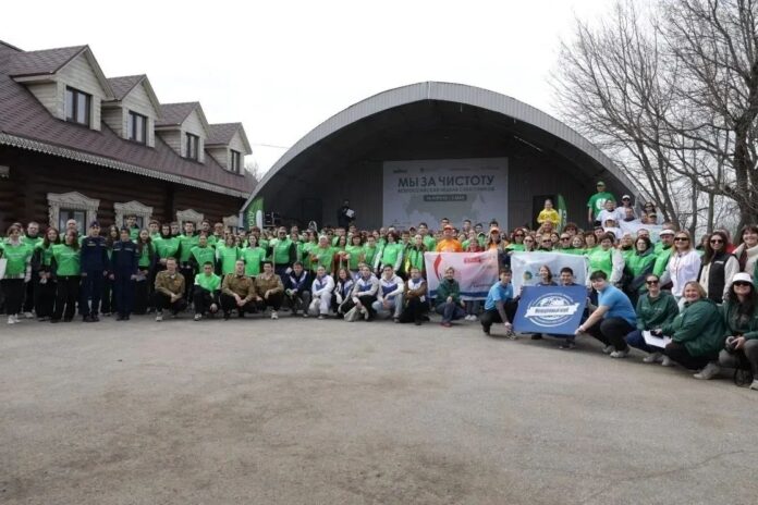 Субботник прошел в поддержку национальных проектов президента РФ Владимира Путина «Экологическое благополучие» и «Молодежь и дети».