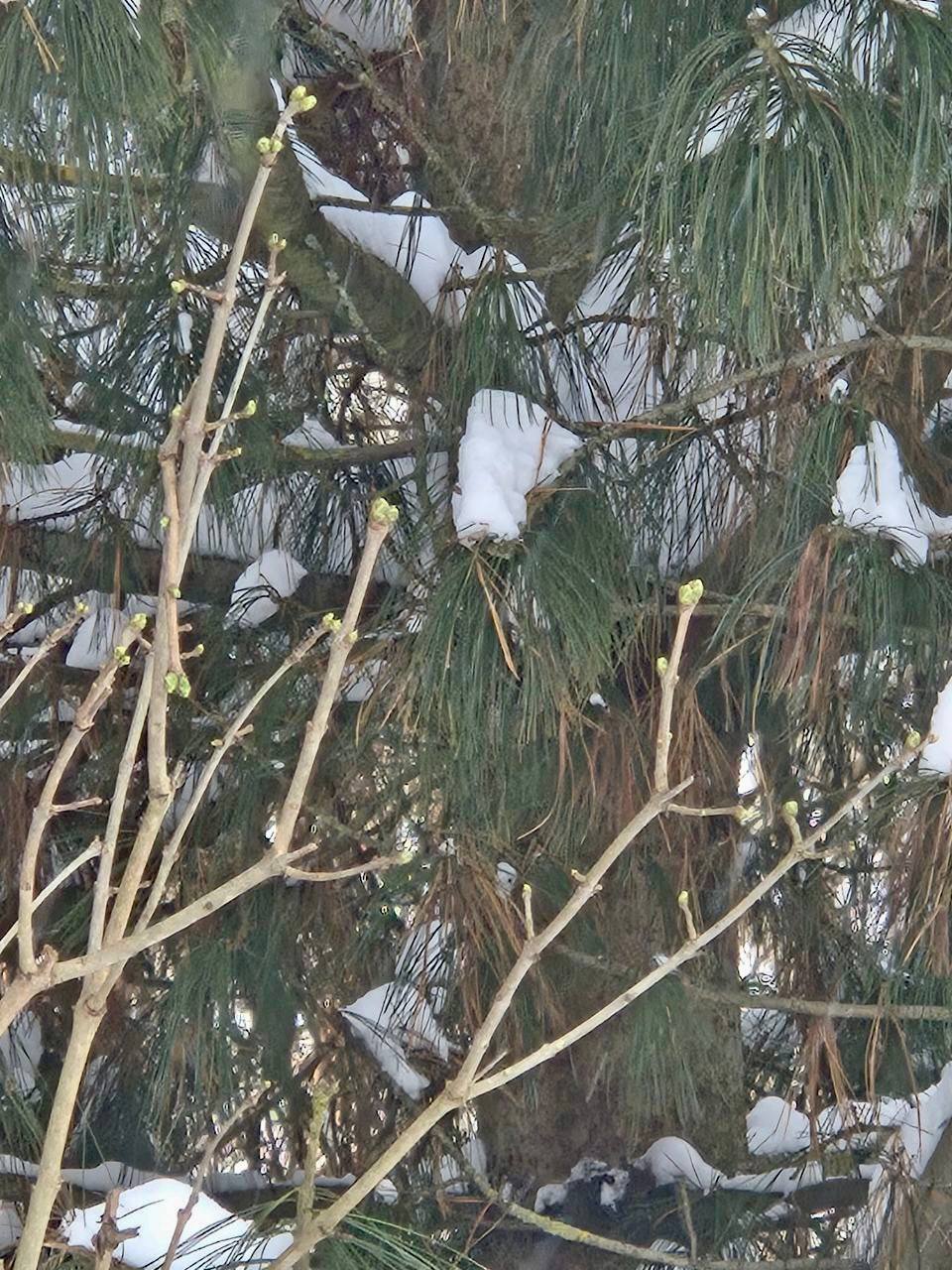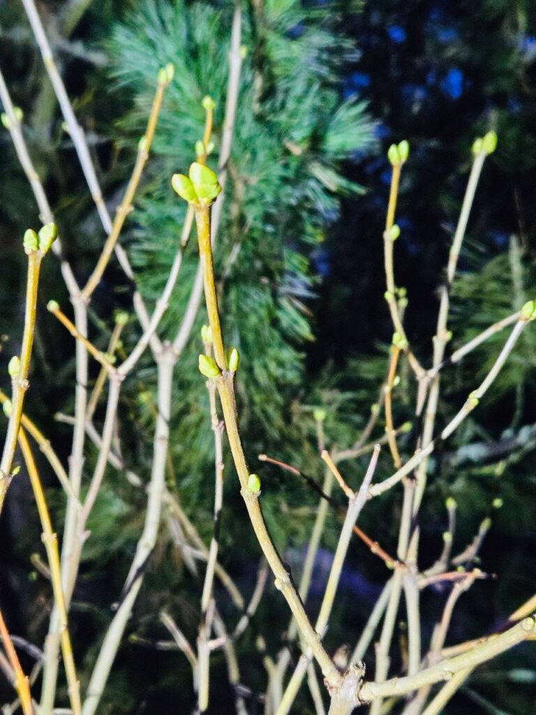 Кстати, это один и тот же куст сирени. Несмотря на холода, почки всё же пробуждаются.
