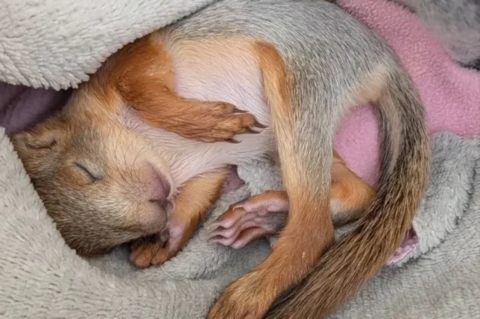 Сотрудники реабилитационного центра «Дикий Лес» рассказали о спасении крошечного бельчонка, который чудом уцелел во время спиливания деревьев.