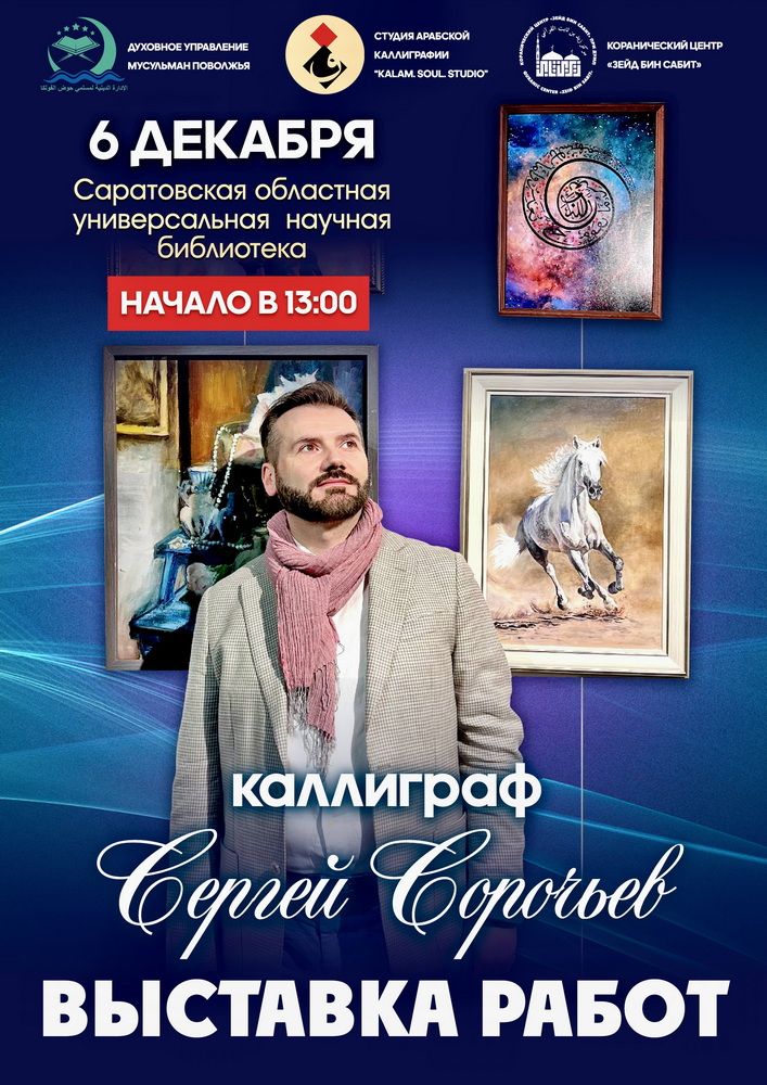 В субботу 6 декабря 2025 года в Саратовской областной универсальной научной библиотеке прошло открытие выставки работ известного мастера каллиграфии Сергея Сорочьева. Об этом сообщает пресс-служба ДУМСО.